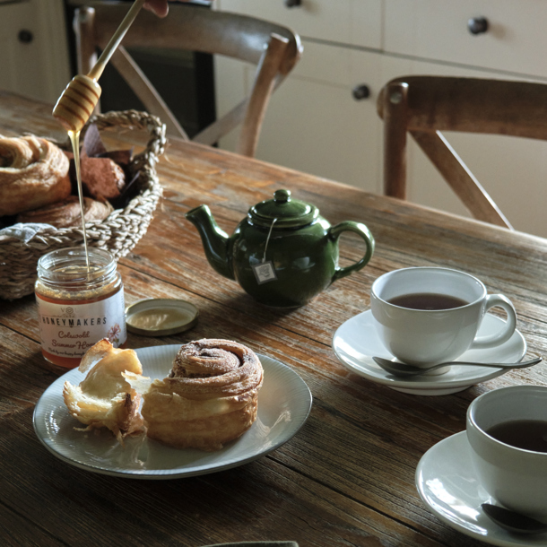 Upstairs, the master bedroom has its own en suite bathroom. The other two bedrooms can be set up as king or twin, depending on who’s coming along. They share a family bathroom and of course a beautiful view across the Cotswolds countryside.