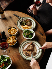 We’re talking Ribeye, Rump, Sirloin and Bavette steaks sourced from Jesse Smith, our independent, family-run meat supplier (just 10 minutes down the road), served with proper chips and peppercorn sauce. With a cracking“keep it in the cellar” bottle of red that has a chunk off the price – EVERY SINGLE THURSDAY!